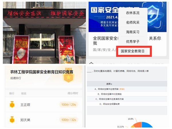 2021年4月15日为第六个全民国家安全教育日。根据学校《关于组织开展全民国家安全教育日暨反间谍安全防范宣传周工作的通知》要求,为进一步提升师生国家安全意识,增强安全责任,农林工程学院围绕主题,结合实际,开展了形式多样的国家安全教育系列活动。